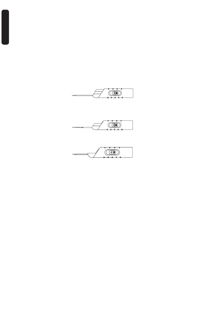 sknappen på sidan framåt (i pilens riktning) så att både troakar och kanyl automatiskt kommer fram.