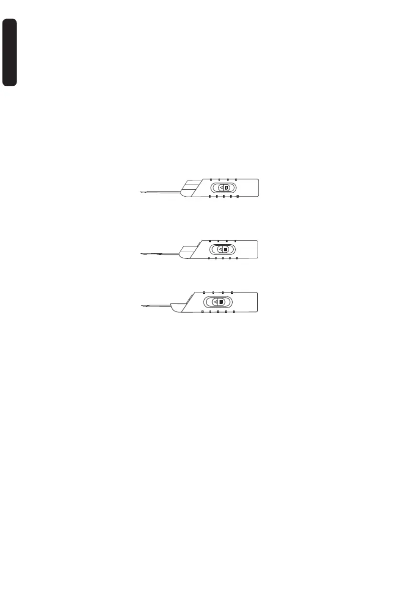 az alsó csúszkát a szonda visszahúzására és rögzítésére. Lásd: 3. ábra. Távolítsa el a tűt védő hüvelyt és a sárga védőpatentot.