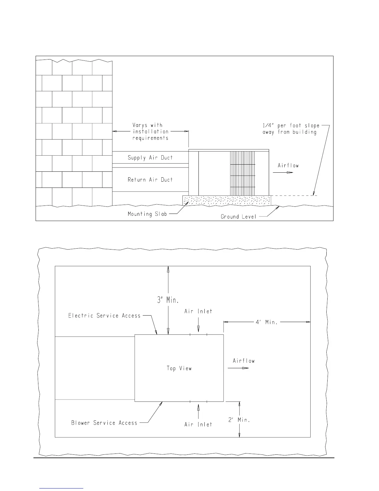 Bard PH11242 - Figure 2 Slab Mounting at Ground Level; Figure 3 Airflow and Service Access Clearances