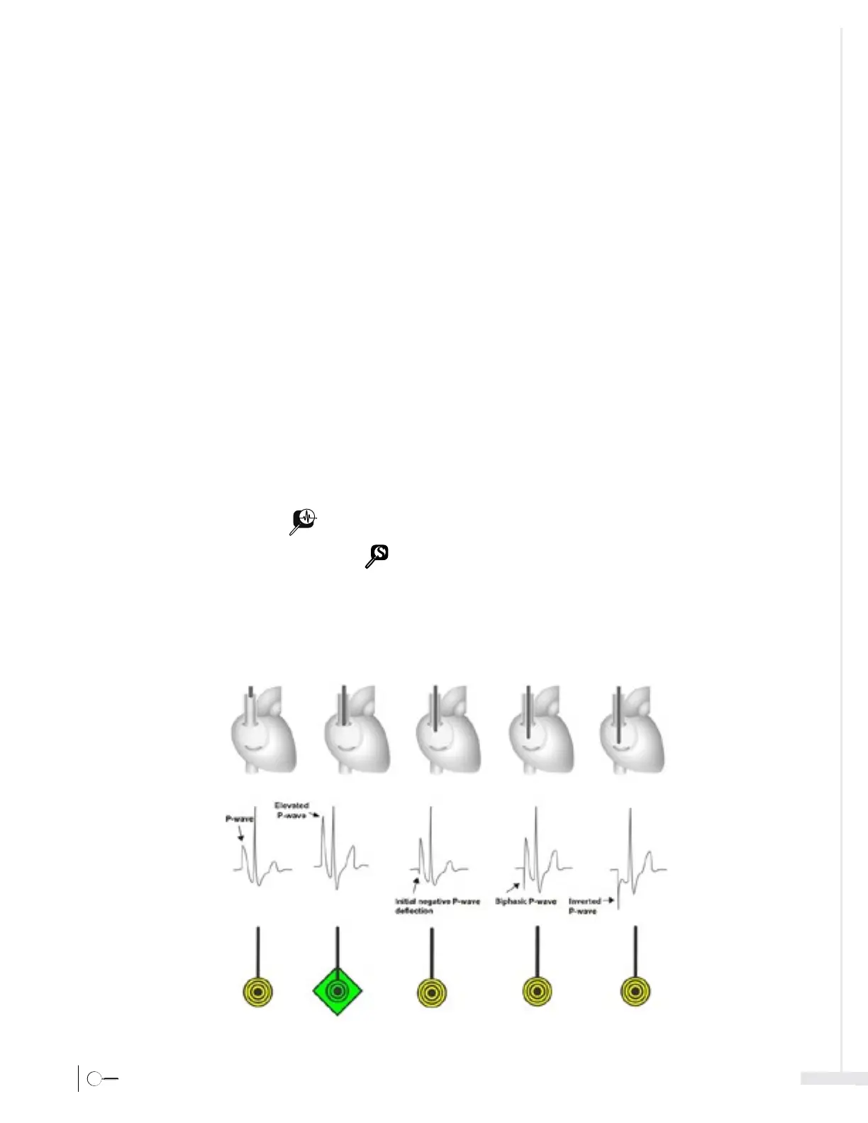 into the right atrium, the P-wave will decrease in amplitude and may be biphasic or invert. In addition to the ECG signal, the magnet tracking stylet icon is