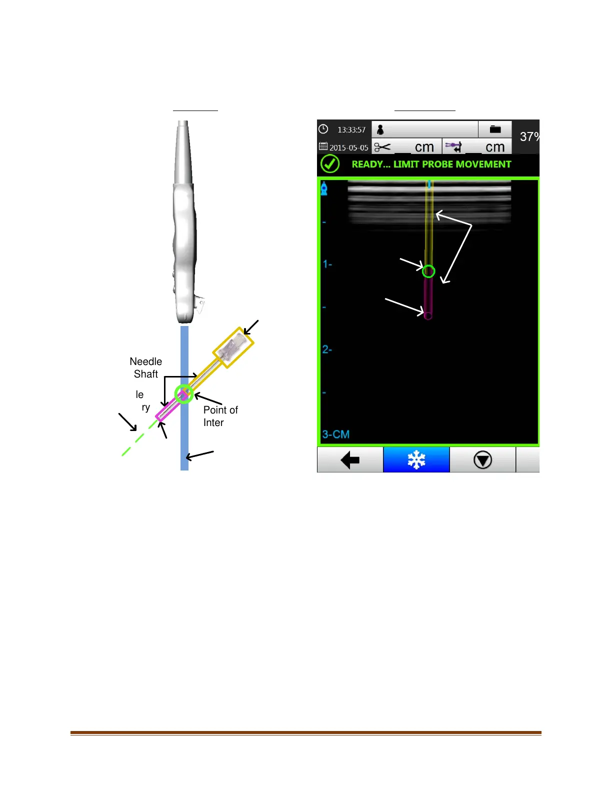 Note: When the virtual needle image changes from yellow to violet, it does NOT necessarily mean that you have