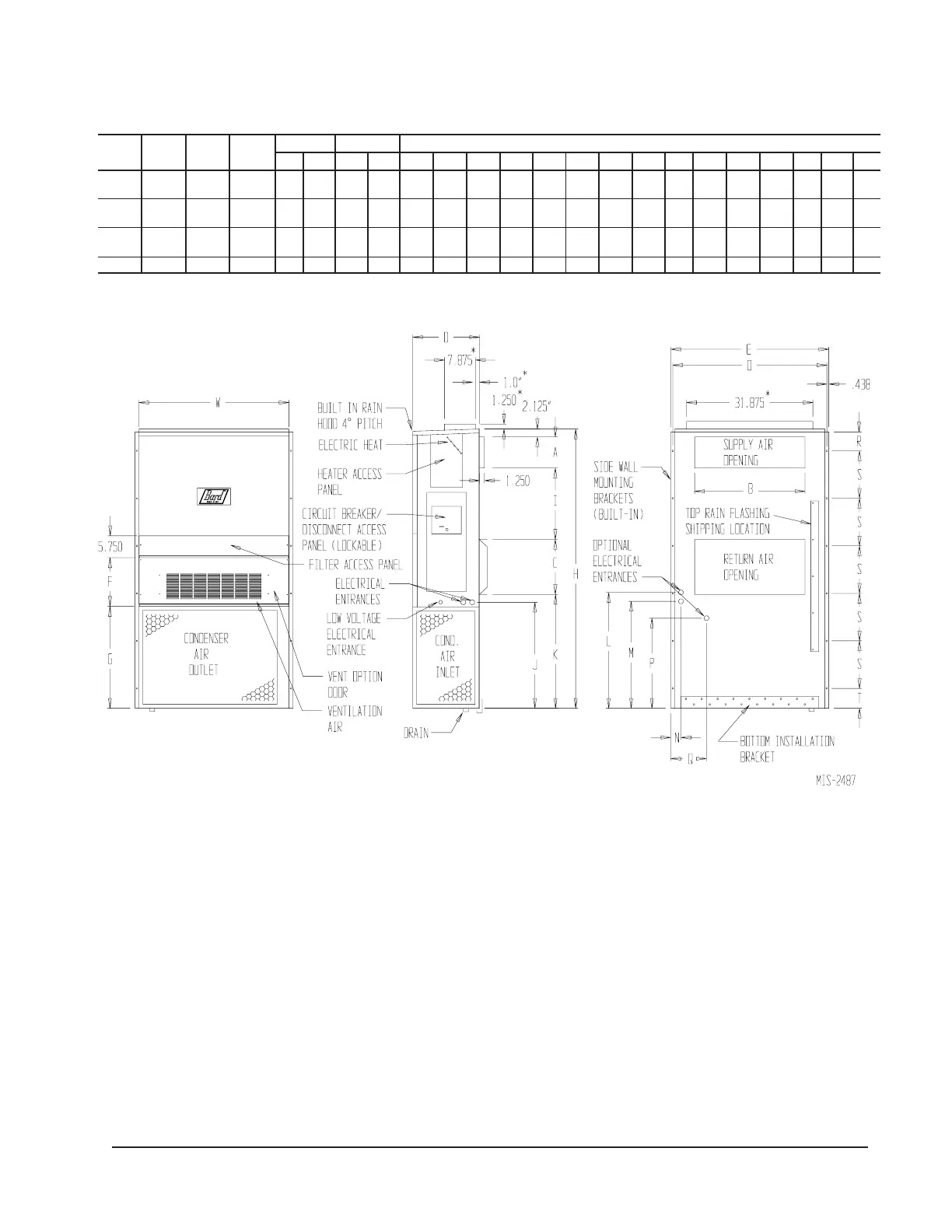 All dimensions are in inches. Dimensional drawings are not to scale.