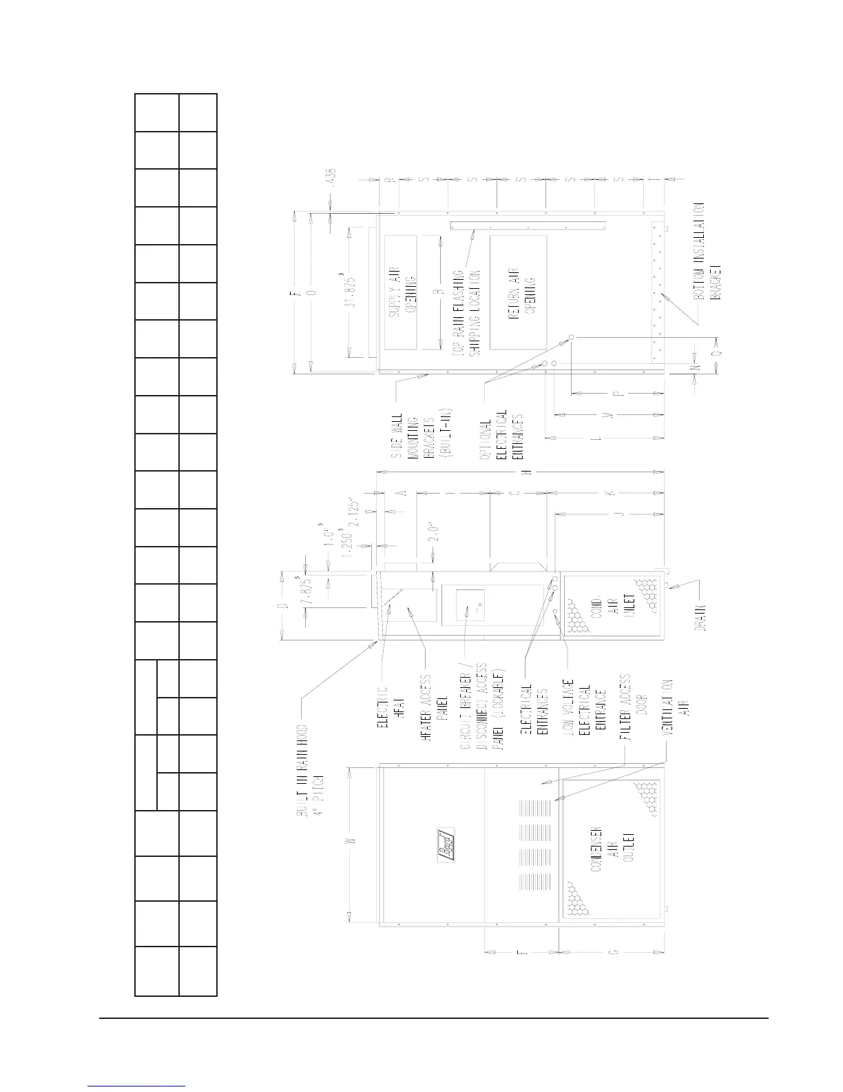 Bard WA361 - Figure 1 Unit Dimensions; Table 2 Dimensions of Basic Unit