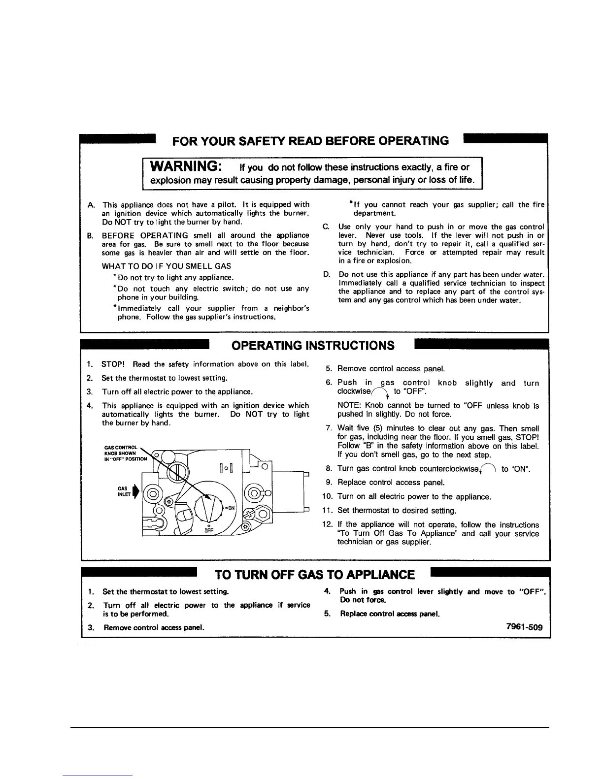 26. LIGHTING AND SHUTDOWN INSTRUCTIONS