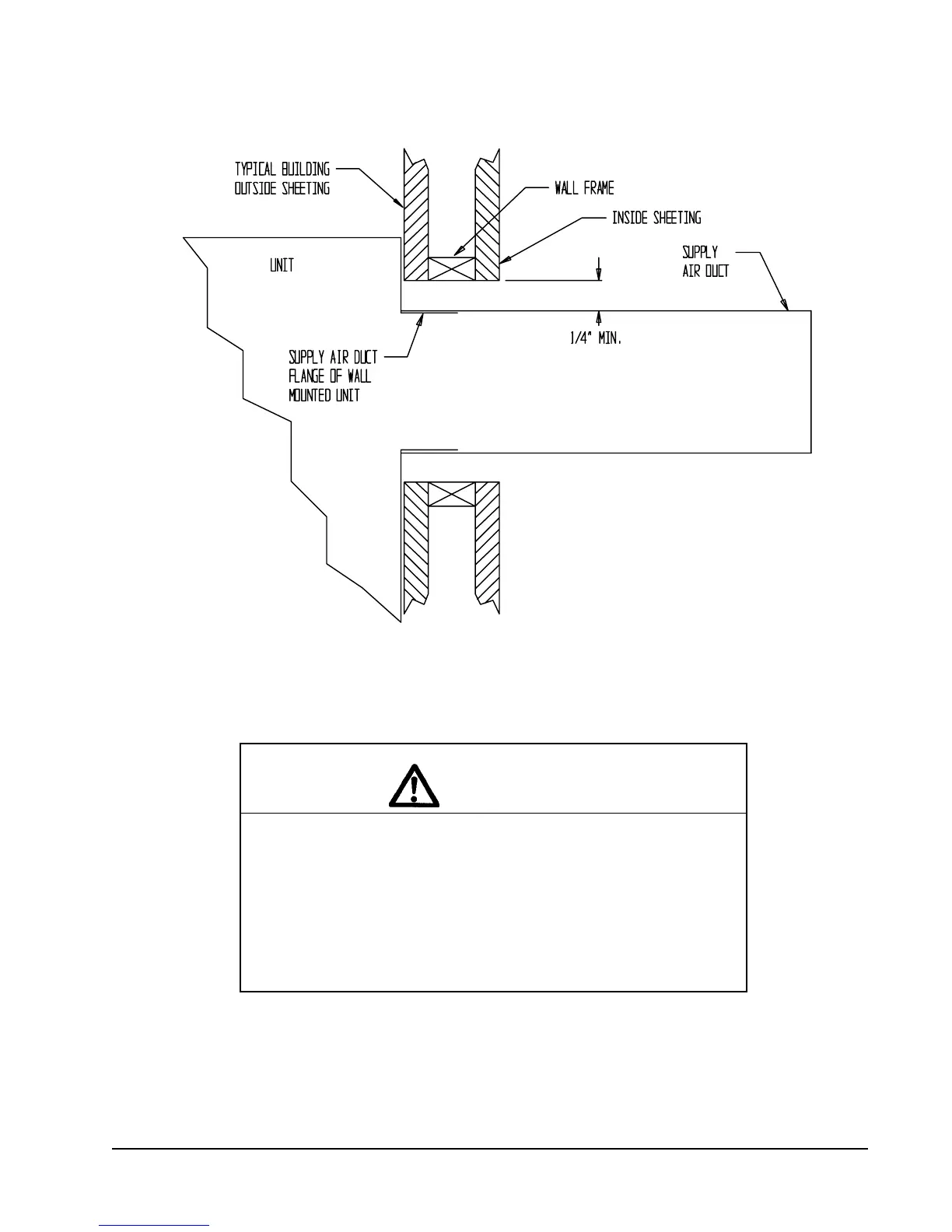 Side section view of supply air duct for wall mounted unit showing 1/4" clearance to combustible surfaces.