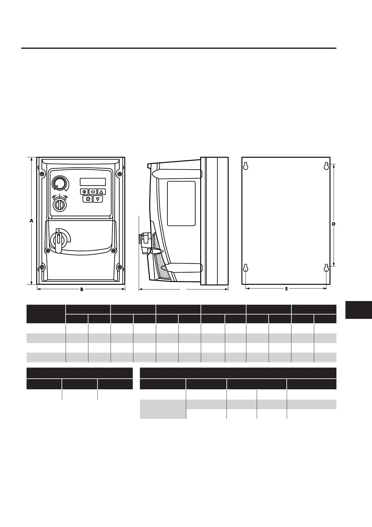The E3 drive should be mounted in a vertical position only, on a flat, flame resistant, vibration free mounting using the integral