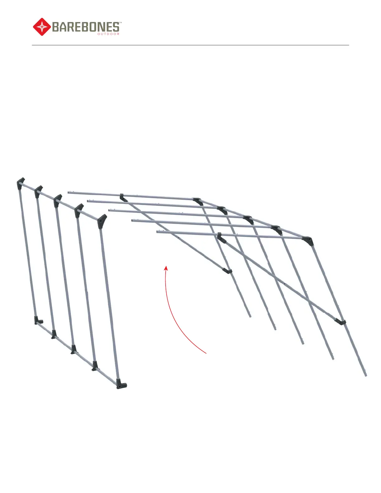 2) Lift one side of the roof up and engage all 5 poles of the roof with the (G) joints.