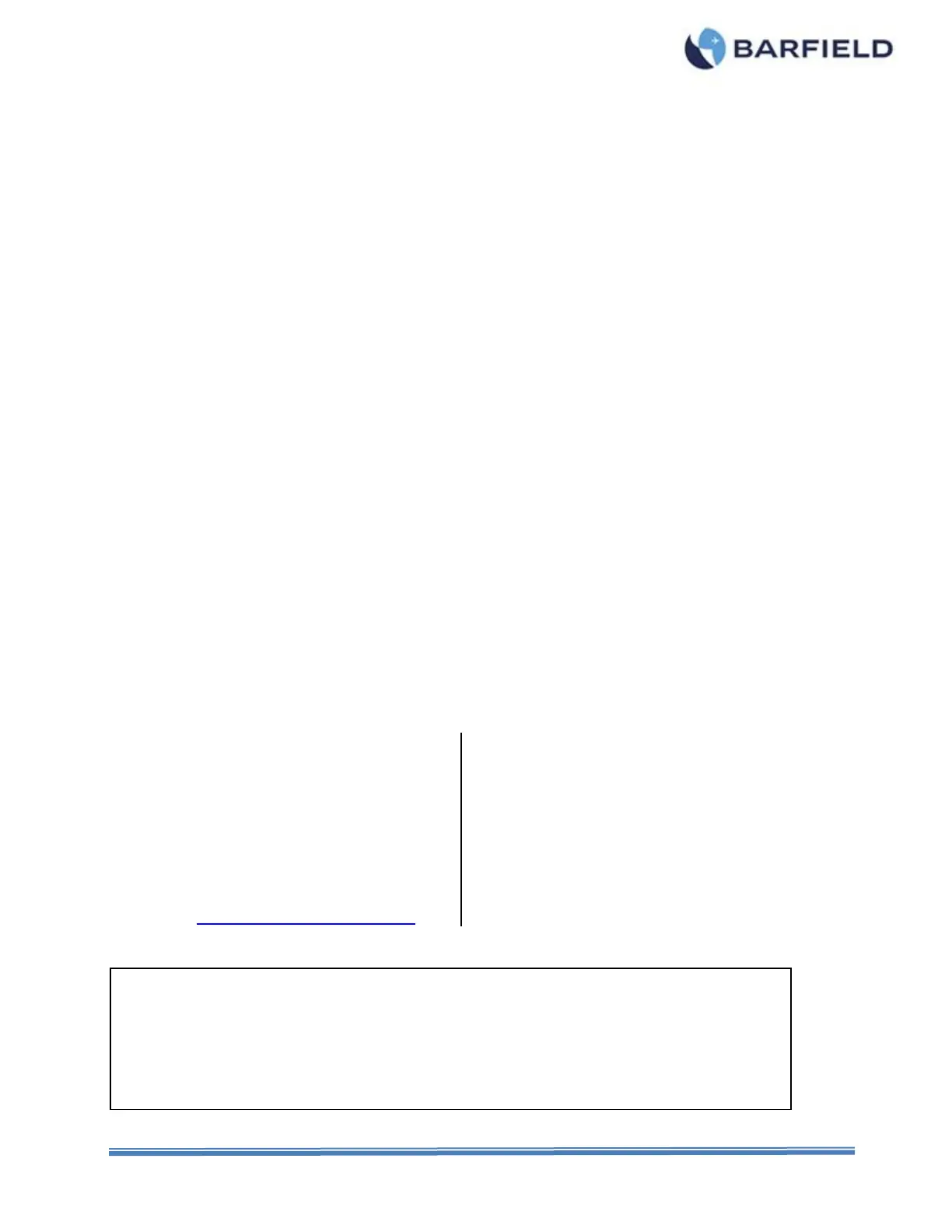 This document and all the information contained herein is the sole property of Barfield Inc.