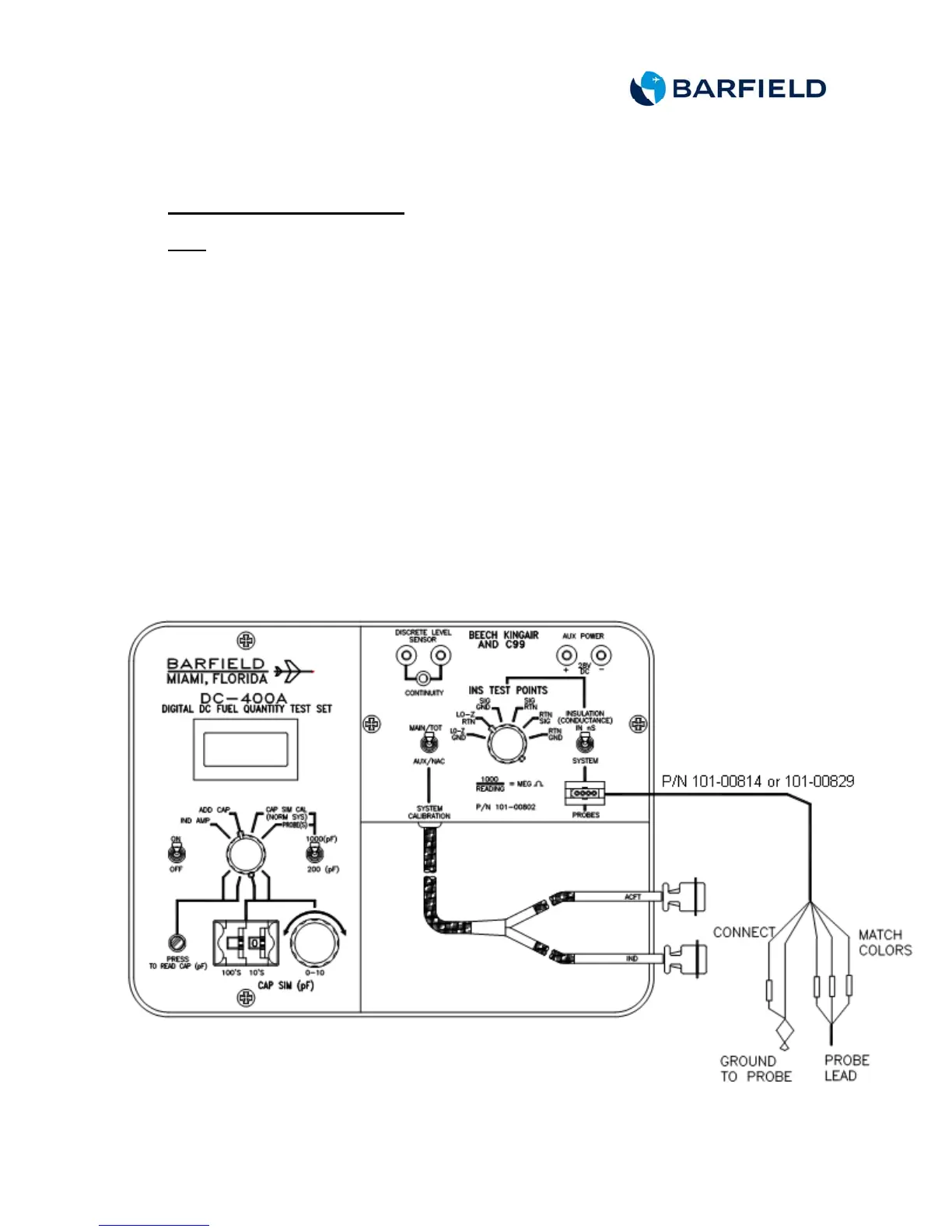 (2) Connect the Beech probe adapter, P/N 101-00829 or 101-00814, to