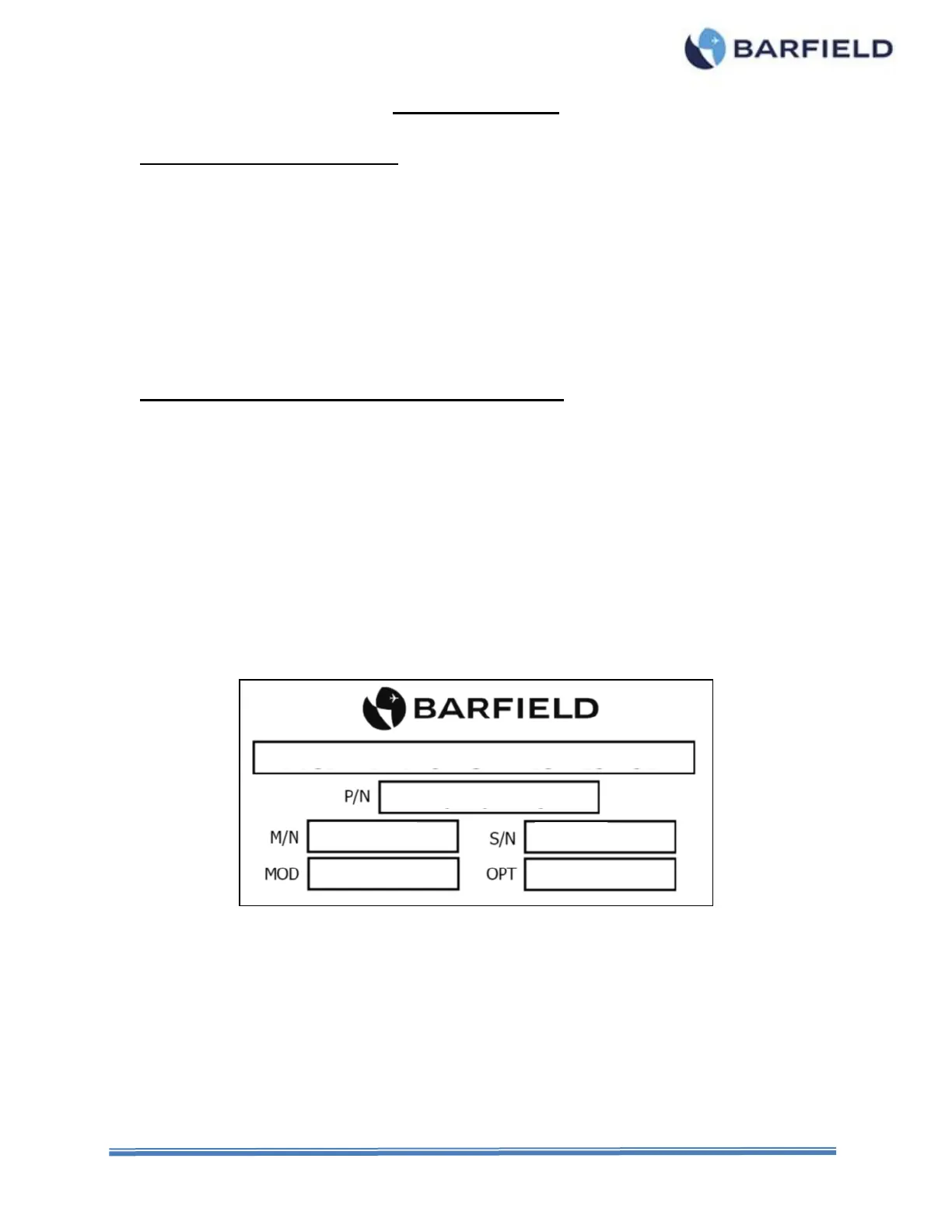 Equipment Modification (if applicable) Equipment Options (if applicable)