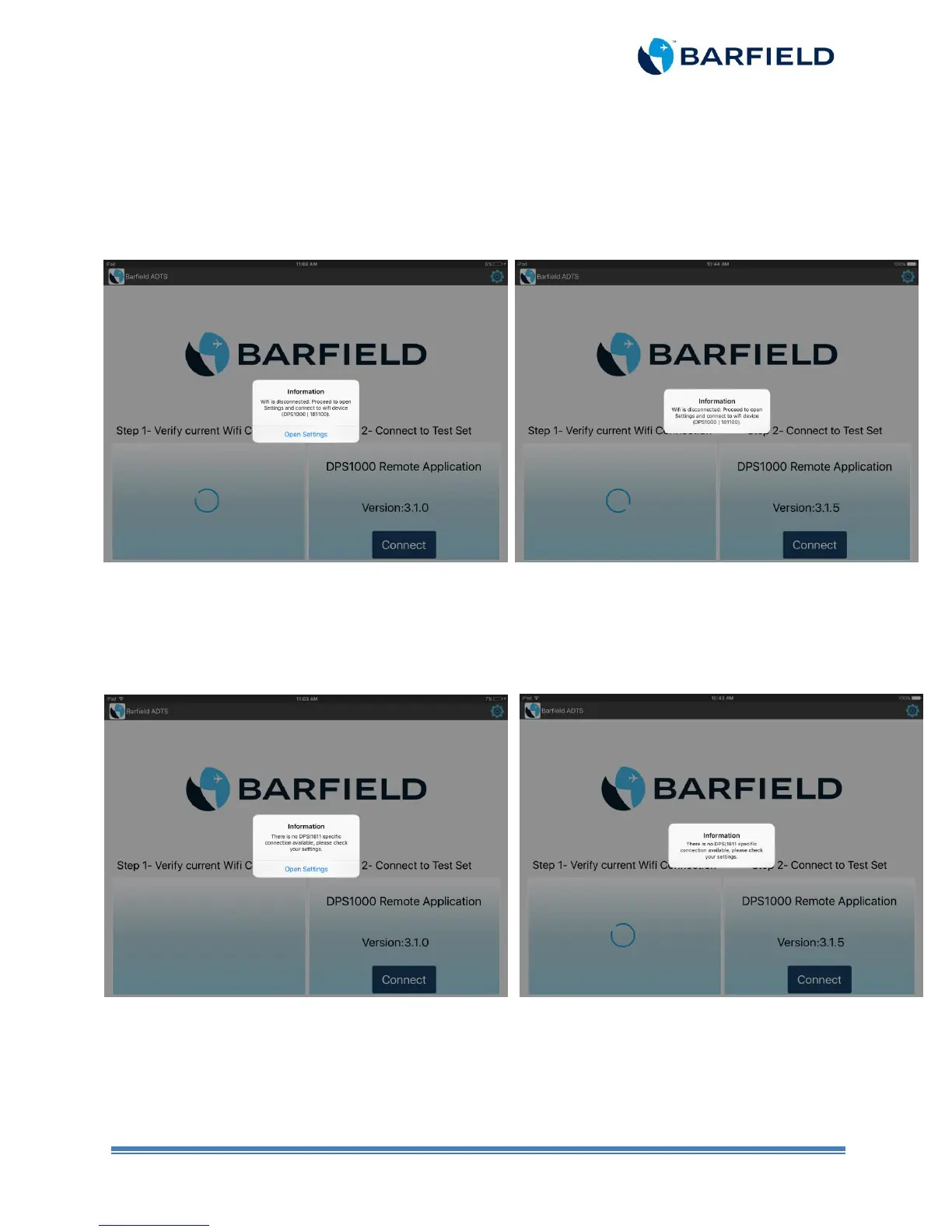 a) Launch the “Barfield ADTS” app. The app automatically detects if there is a Wi-Fi