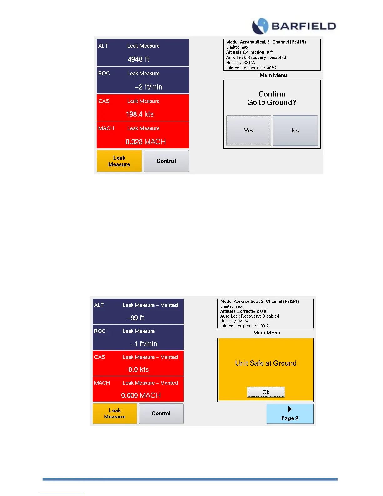 The user can select “Go To Ground” from the Main menu, while in either Leak Measure or