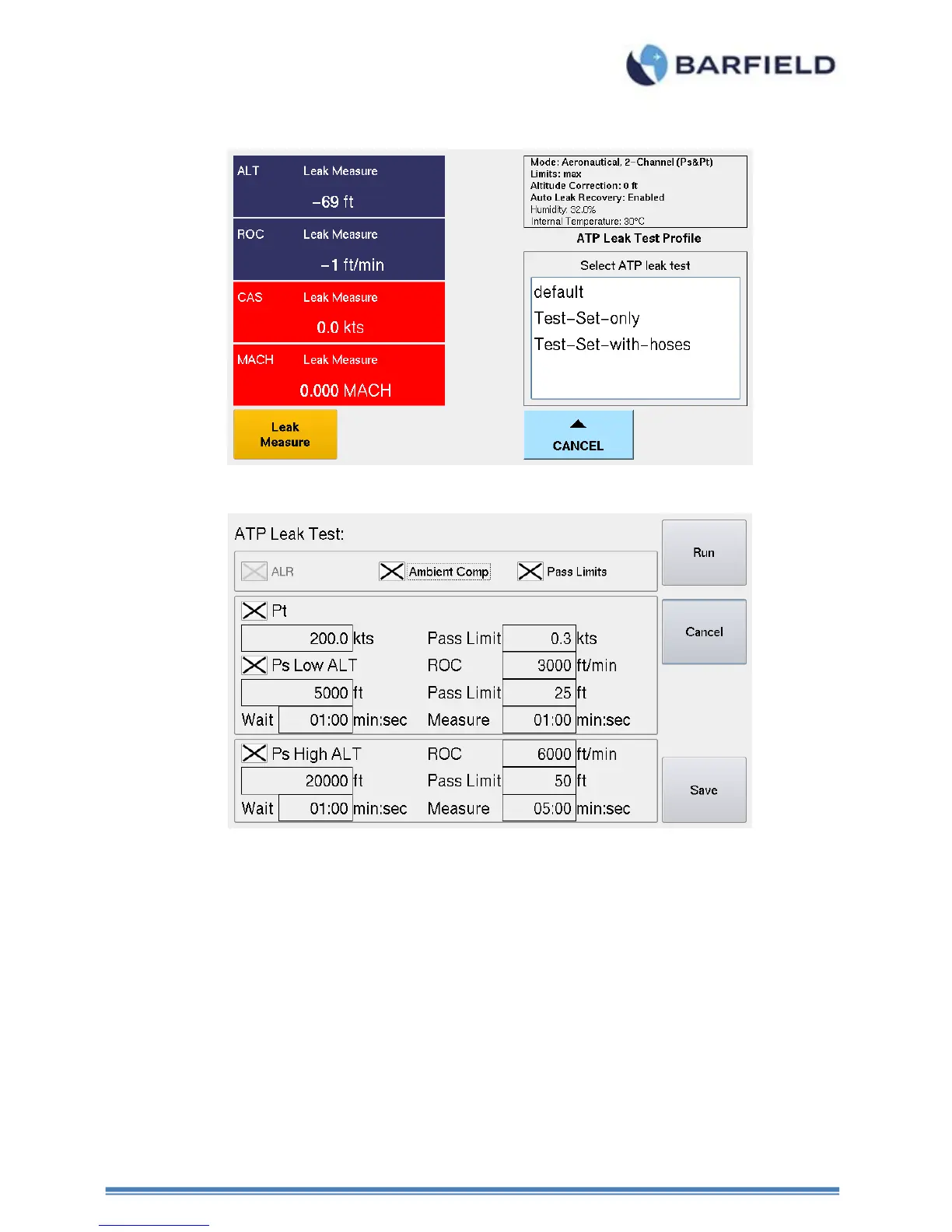 options: “Leak Rate Timer and ATP Leak Test Profiles.
