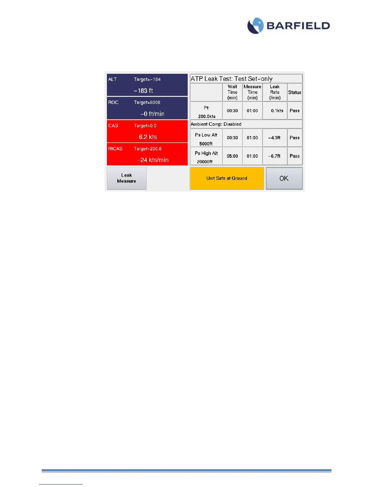 If the leak rate does not exceed 2 kts/min or 50 ft/min, record the leak rate of the Test Set