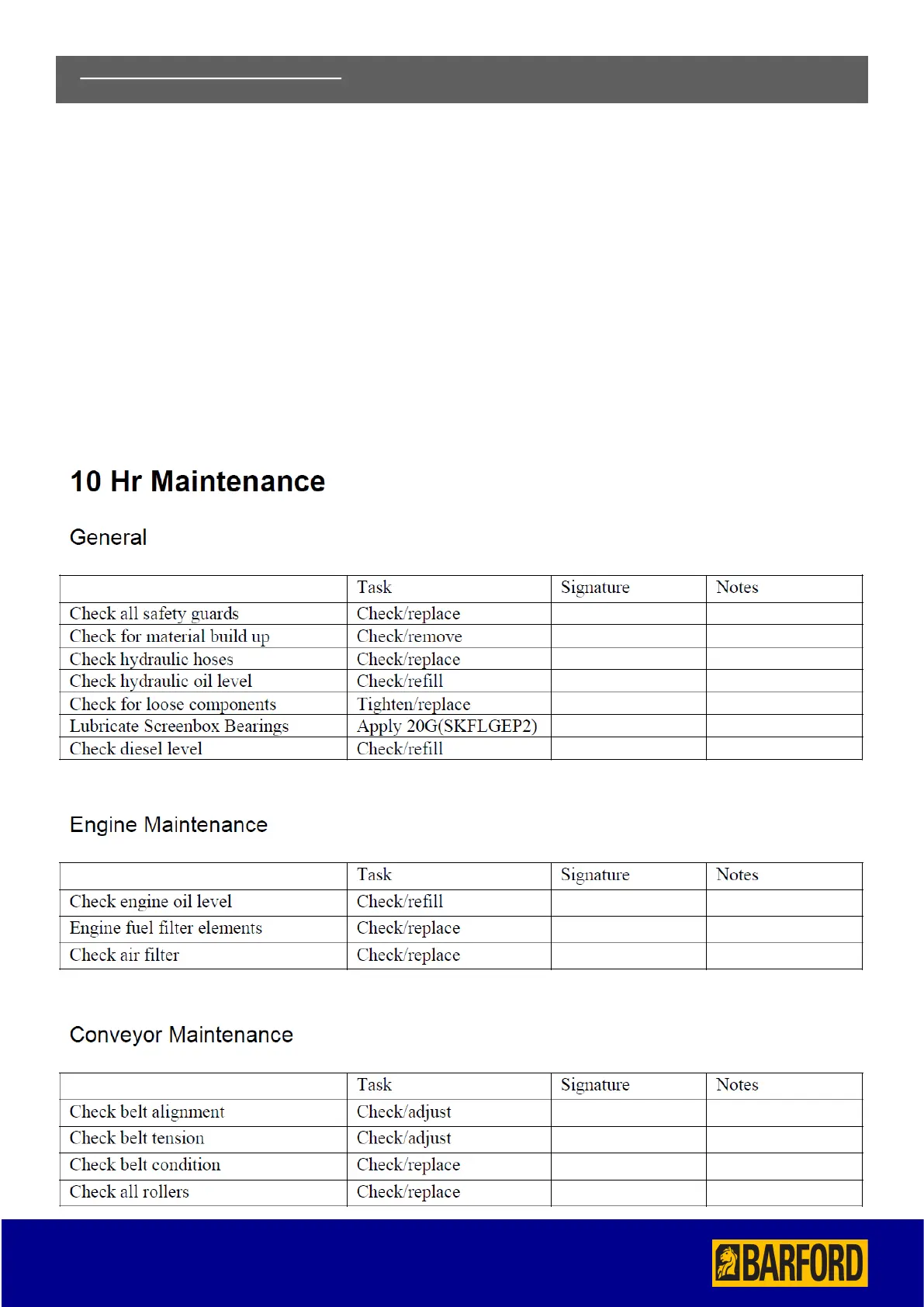 • When maintenance is carried out ensure all safety aspects are in good working order before returning the machine to operating