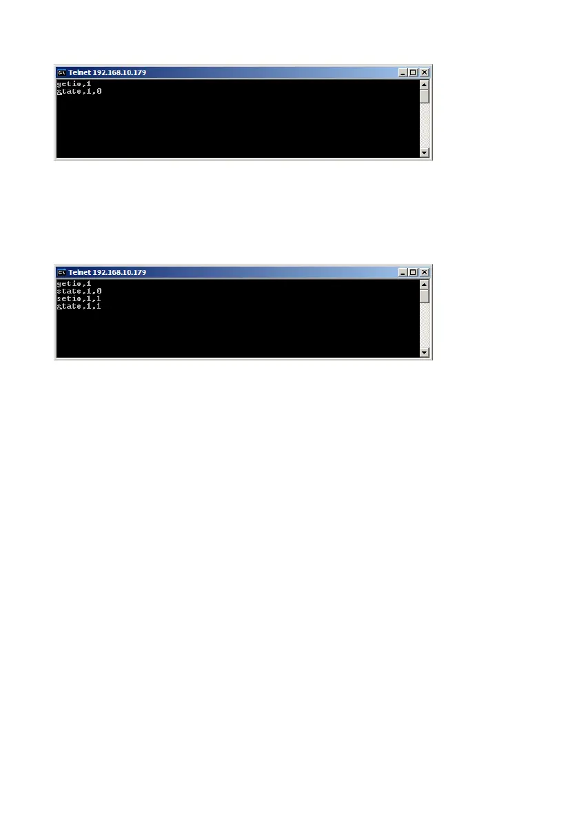 In the next picture below the command “setio,1,1” is sent.
