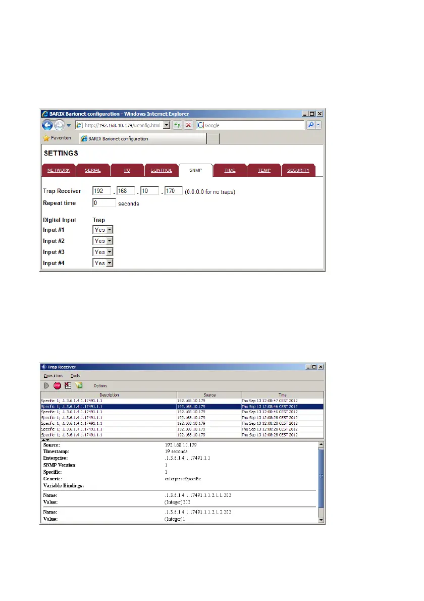 When enabled the Barionet will send SNMP traps whenever an input state is