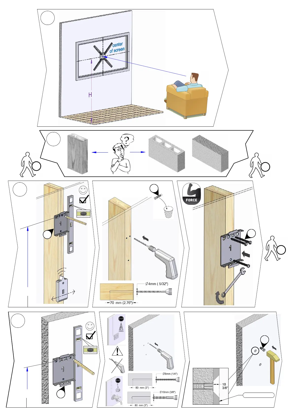 Barkan 30 - Wall Mounting Procedures; Positioning the Mount Bracket; Mounting on Wood Studs; Mounting on Concrete;Brick Walls