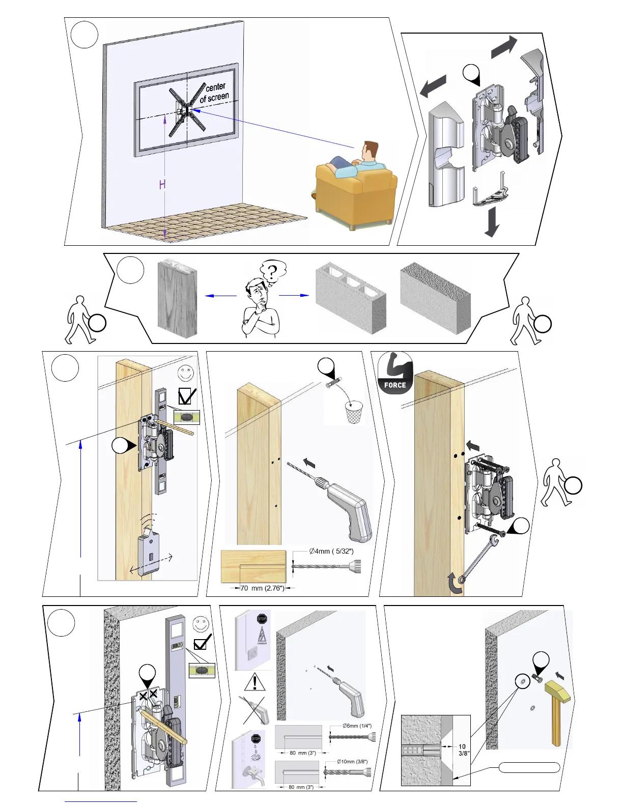 Barkan 32 - Wall Mounting Procedures; Mounting to Wall Studs; Mounting to Concrete or Brick
