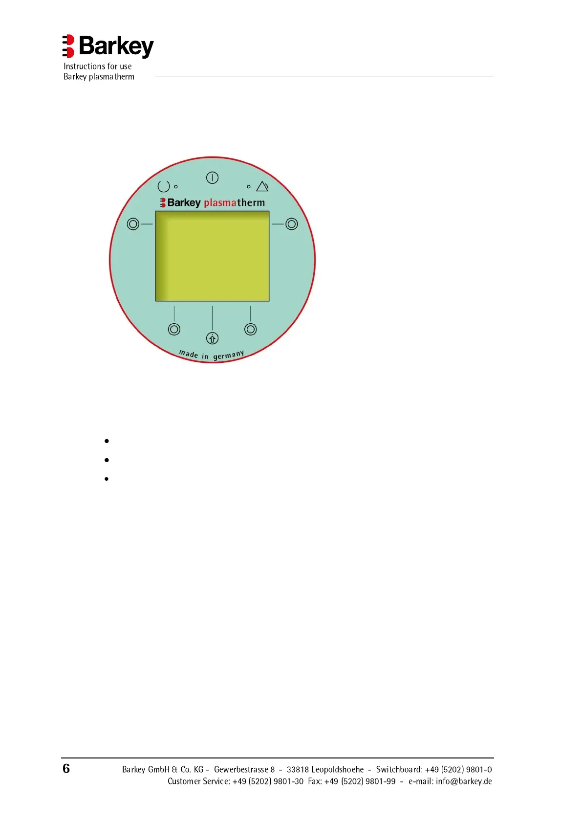 The Barkey plasmatherm has an operating panel on the front of the device with a multi-