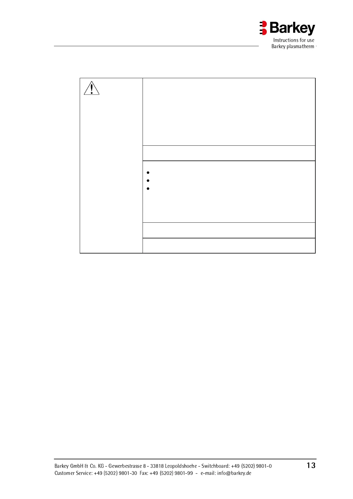 increase the distance between the Barkey plasmatherm and the