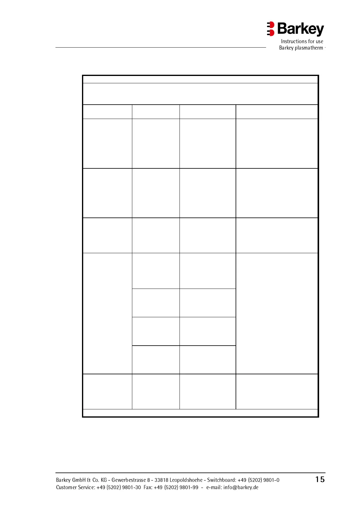 listed below. The customer or user of the Barkey plasmatherm must ensure that it is operated