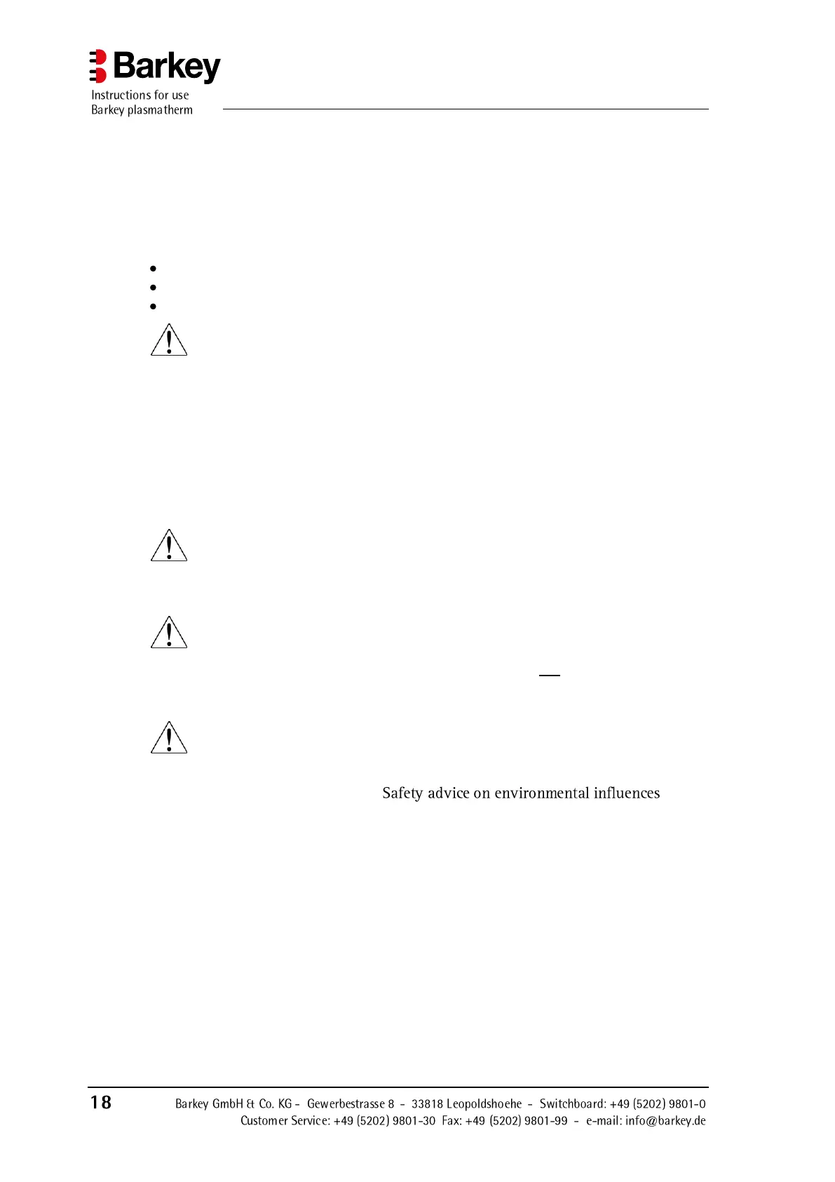The Barkey plasmatherm must be set up on a stable, hard and level surface. Unobstructed