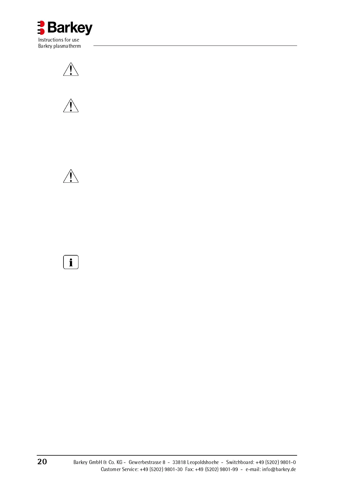 when connecting peripherals to the Barkey plasmatherm for the first time. Details