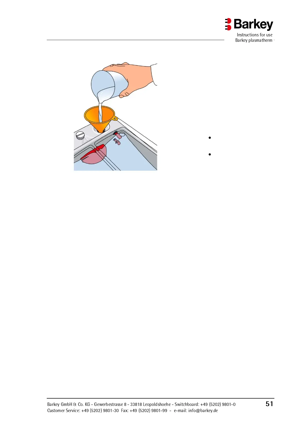► Place a suitable funnel in the filler