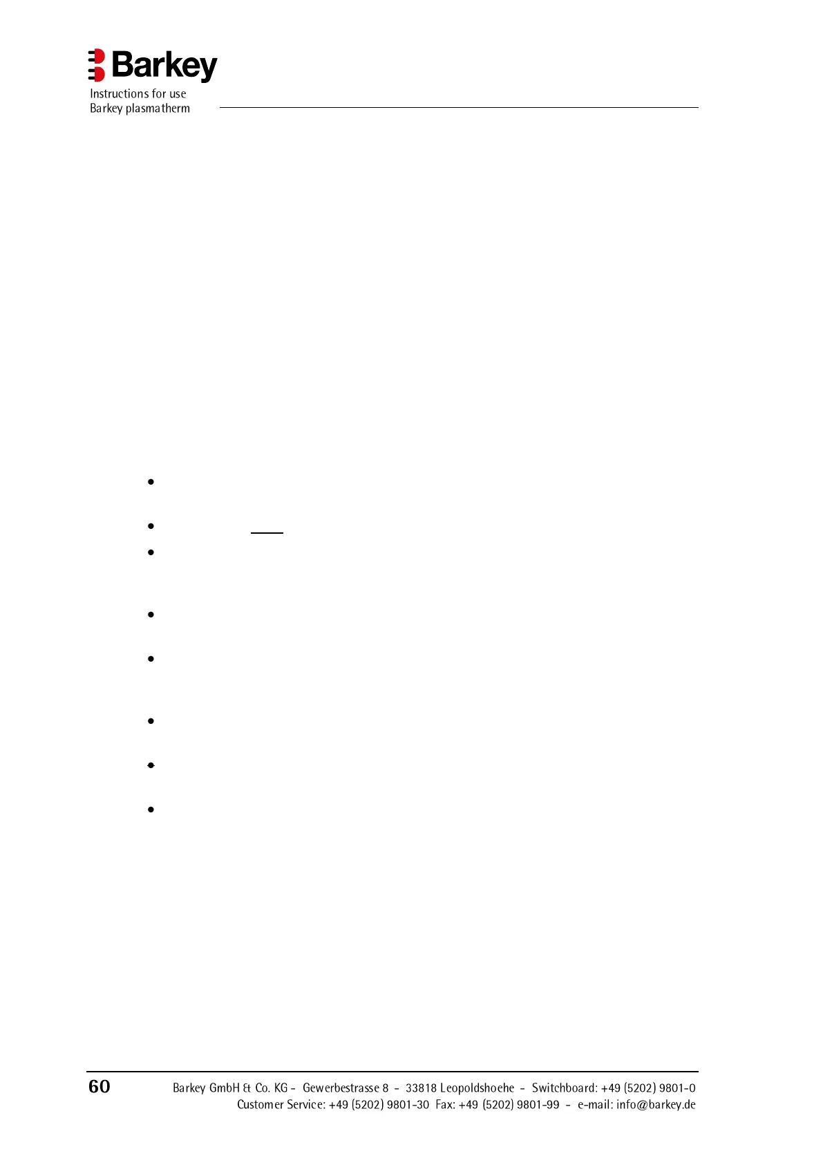damaged in transit. Barkey GmbH & Co. KG can accept no liability for damage in
