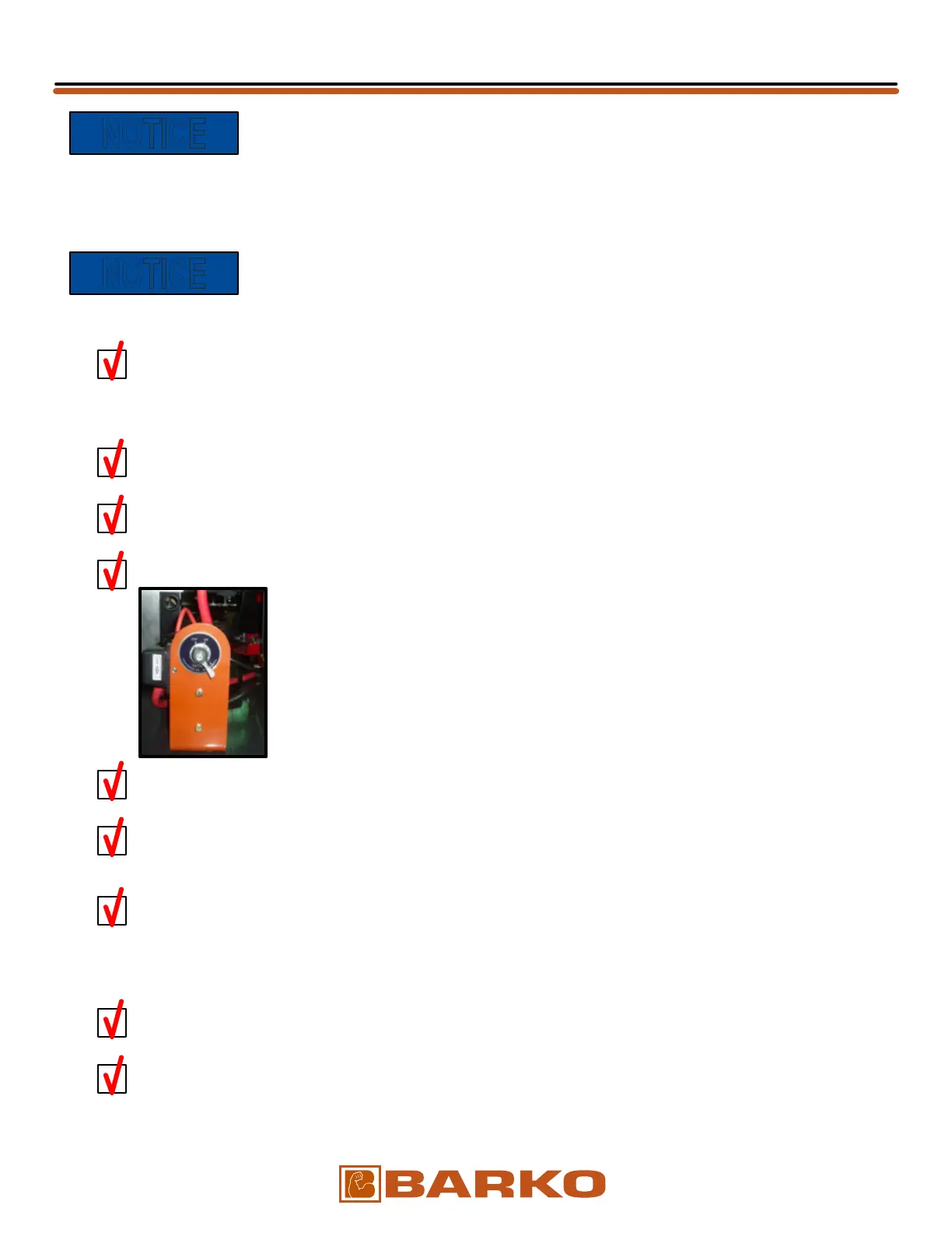 On BARKO Harvester machines, TURN OFF the Attachment Arming Switch. See