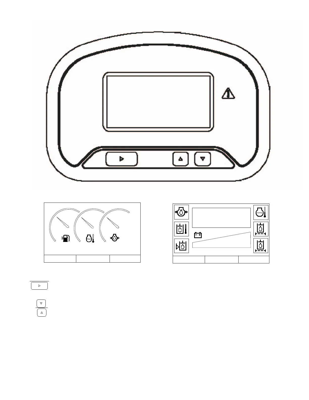 Items are selected within each menu utilizing the up / down arrows on right side of panel. Once the desired