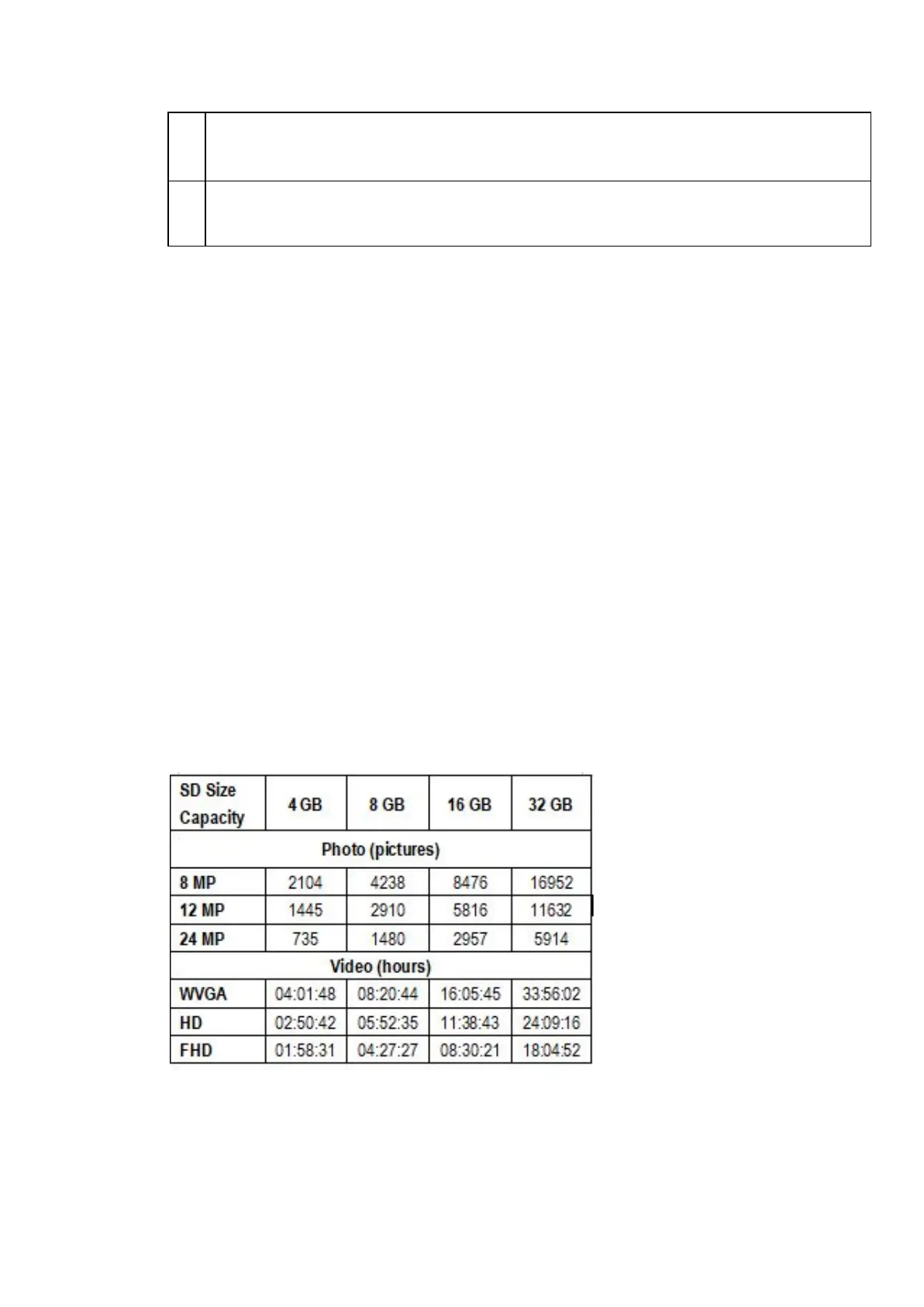 Chart below will show you the approximate capacity of different size SD