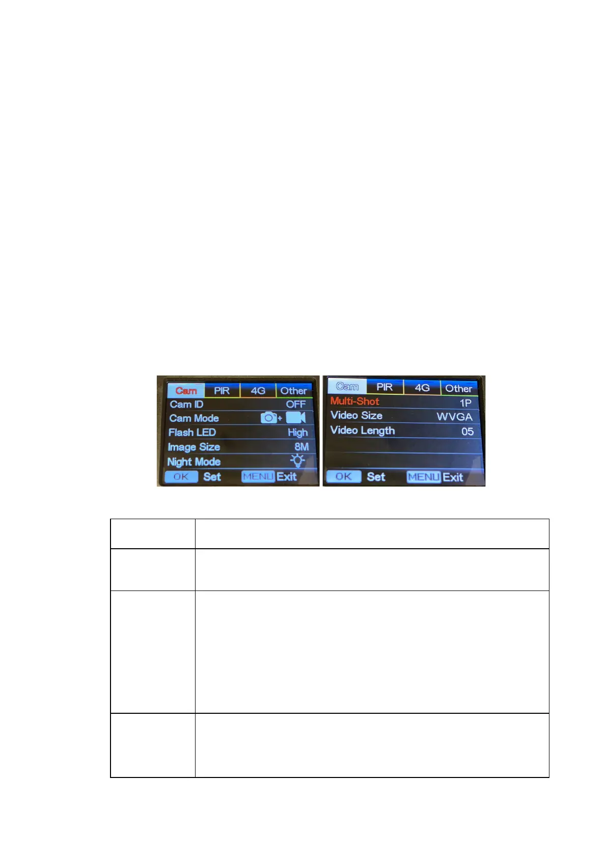 Note: For some settings, you’ll need to press “OK” to save your entry (Cam