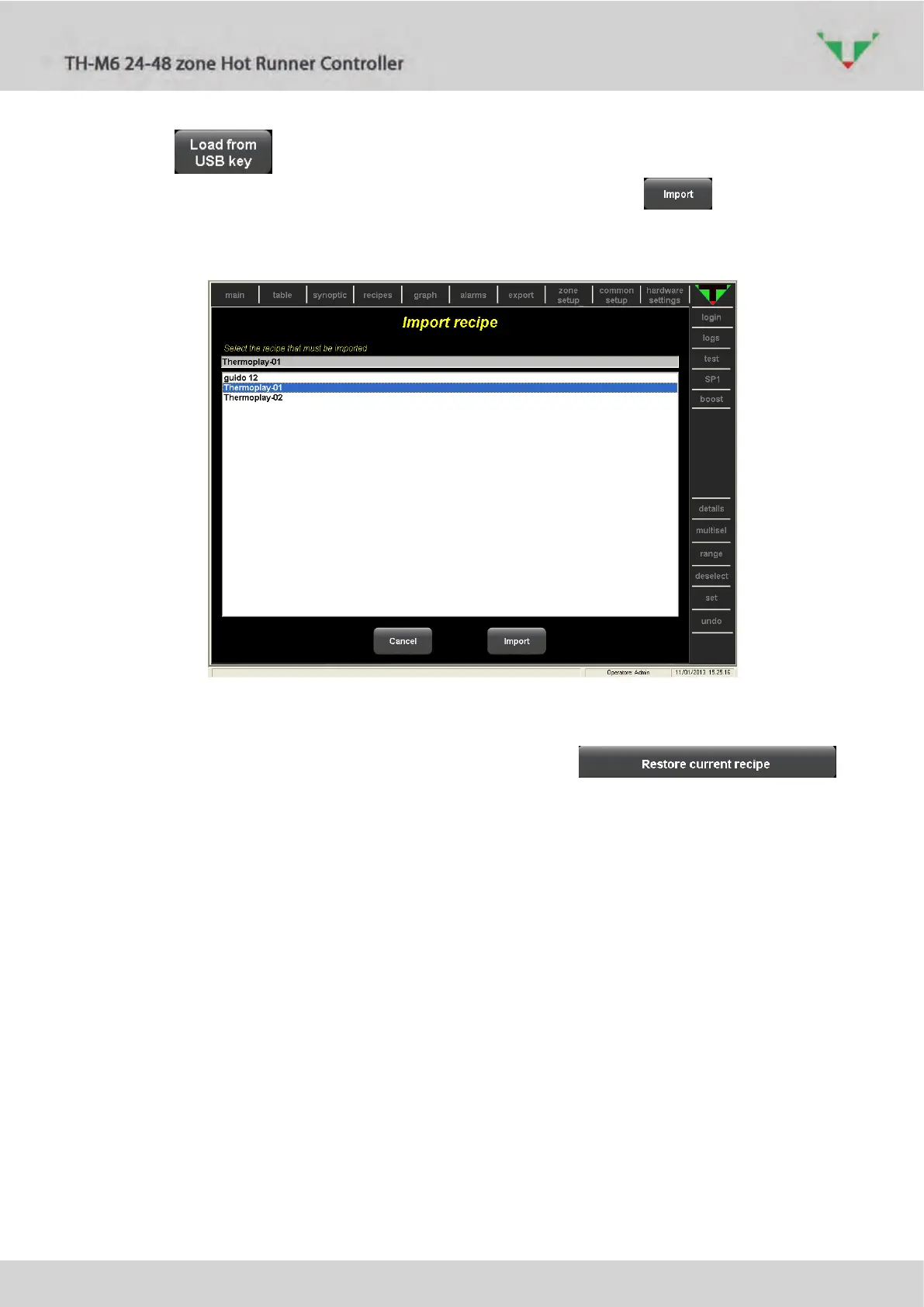 button allows to restore all the settings (zone and common parameters, synoptic configuration)