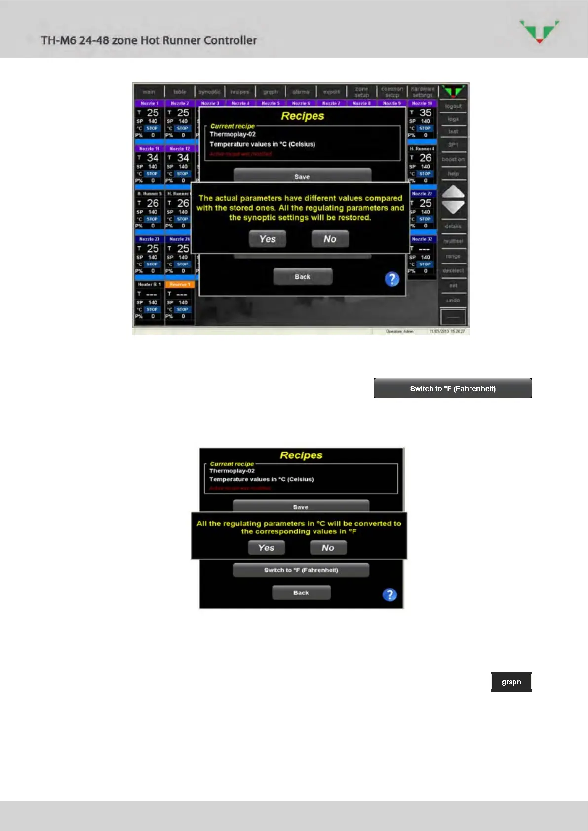 button allows to convert all the values of the regulating parameters to the corresponding value