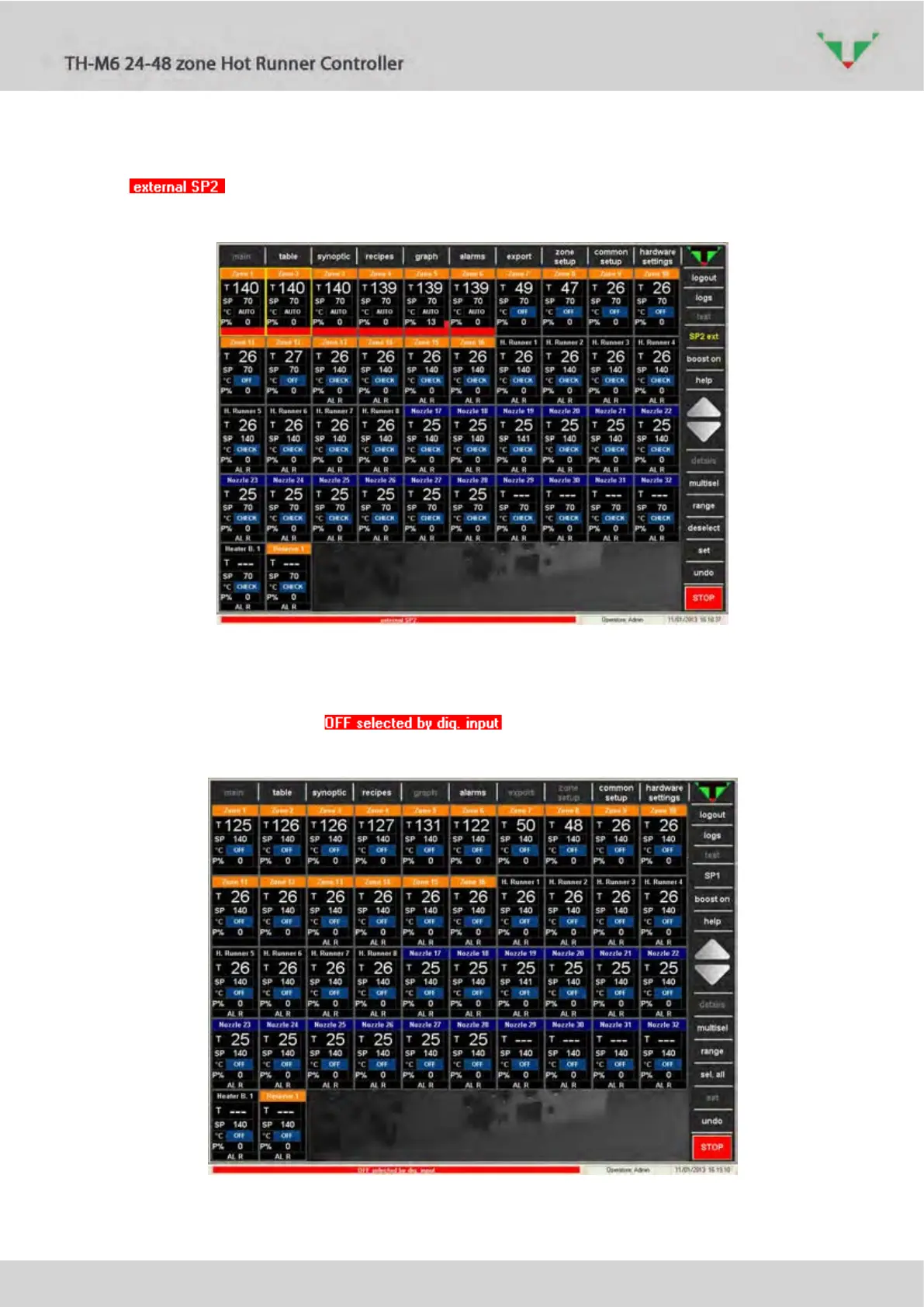 • DIN-2: automatic commutation of all the zones in OFF, message in bottom area “OFF
