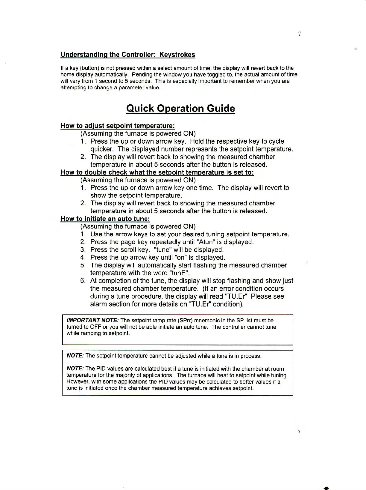 Barnstead F62730 - Quick Operation Guide; Adjusting Setpoint and Initiating Autotune