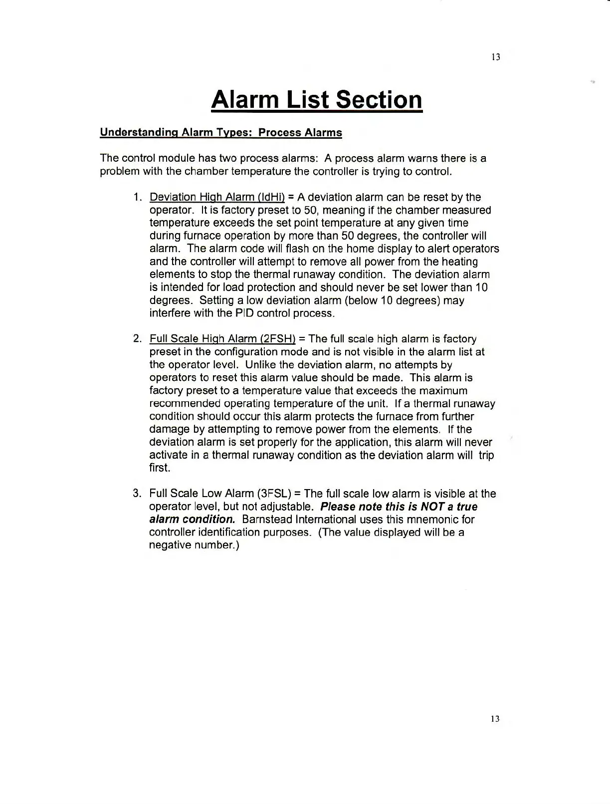 Barnstead F62730 - Alarm List: Process Alarms; Understanding Process Alarm Types