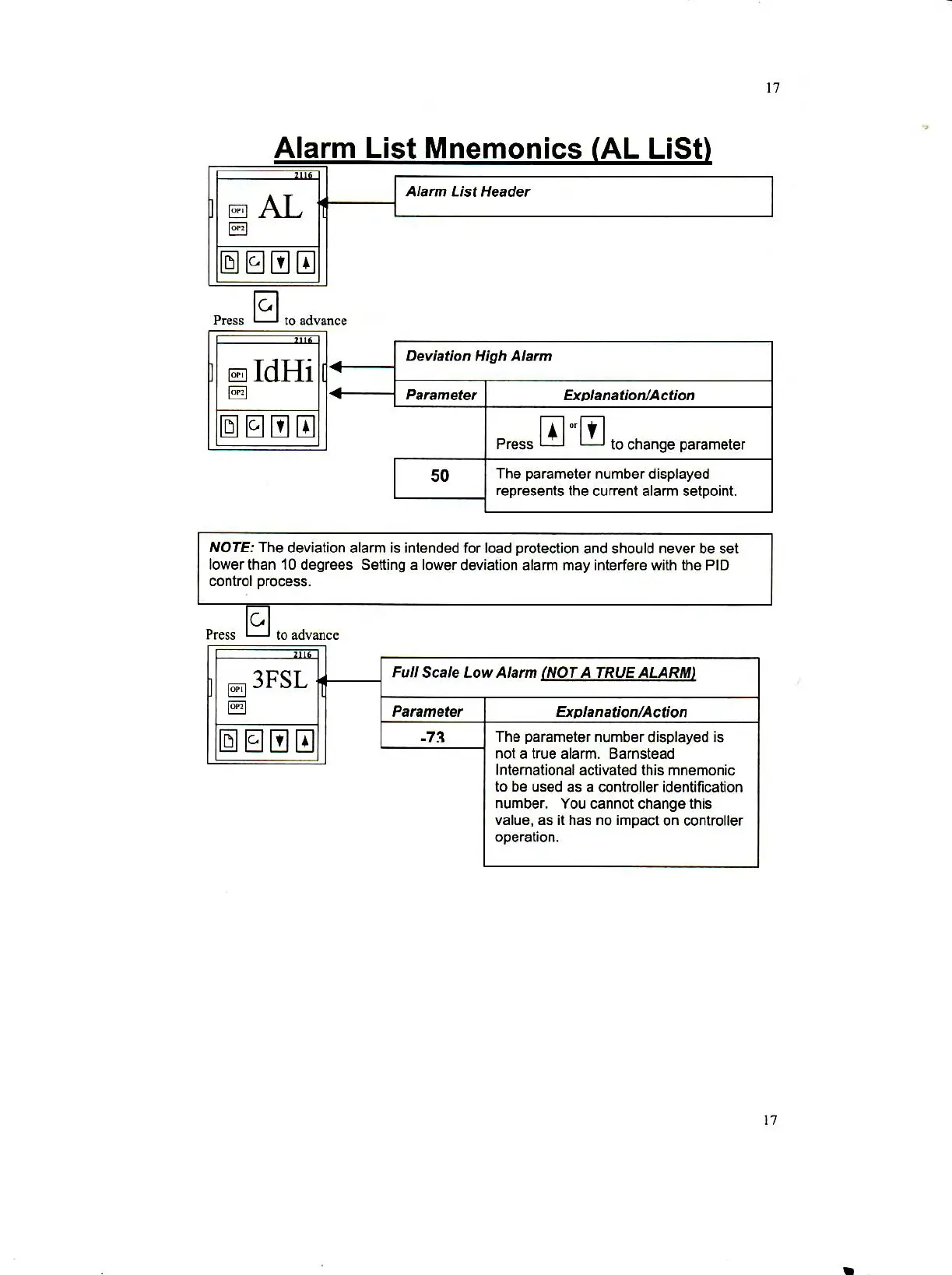 Barnstead F62730 - Alarm List Mnemonics; Deviation High and Low Alarm Configuration