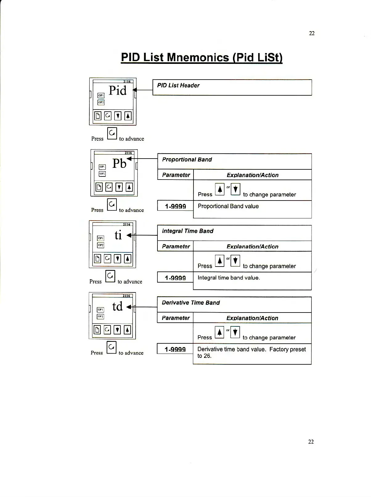 Barnstead F62730 - PID List Mnemonics; Proportional, Integral, and Derivative Settings