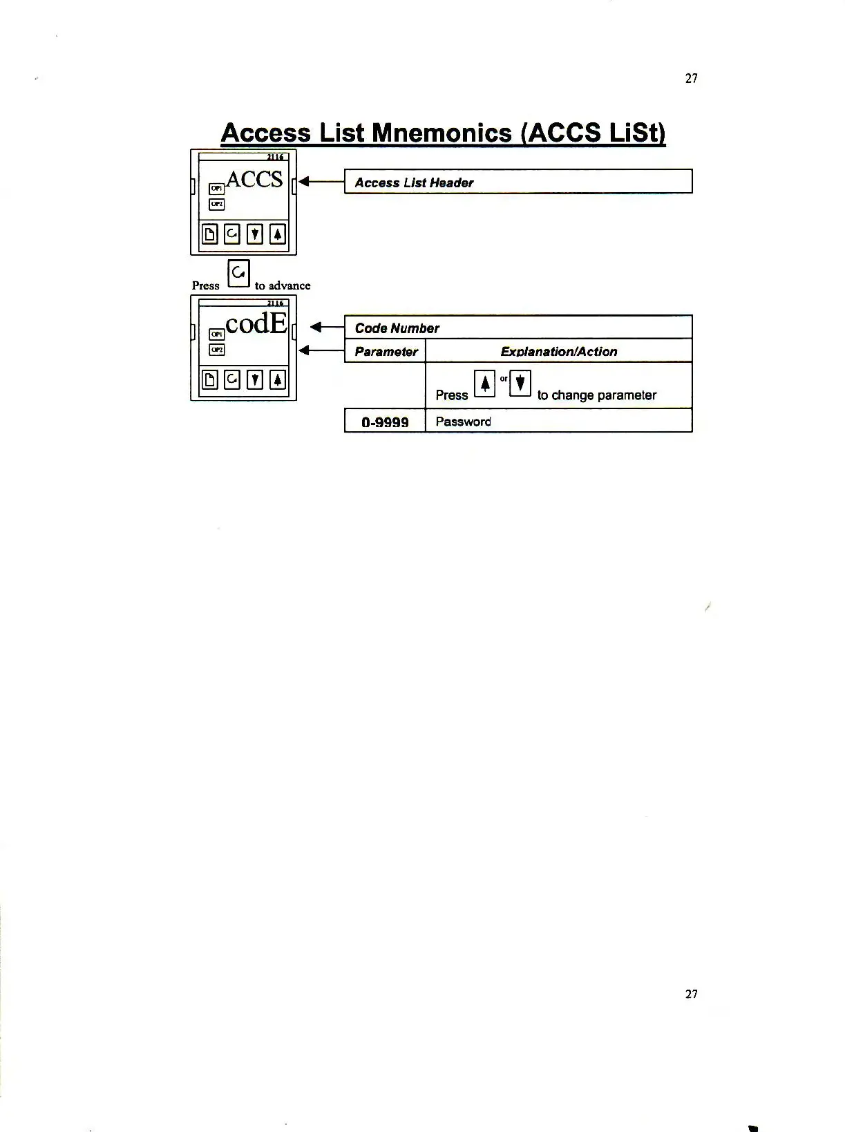 Barnstead F62730 - Access List Mnemonics; Code Number and Password Entry