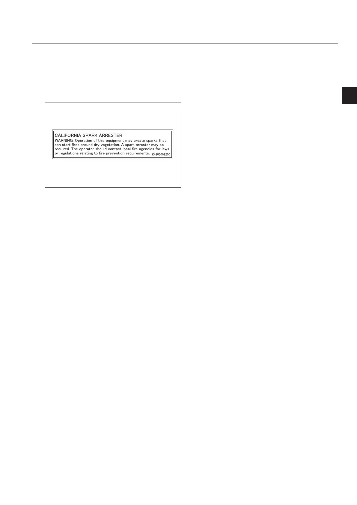 Spark arrester warning decal describes the