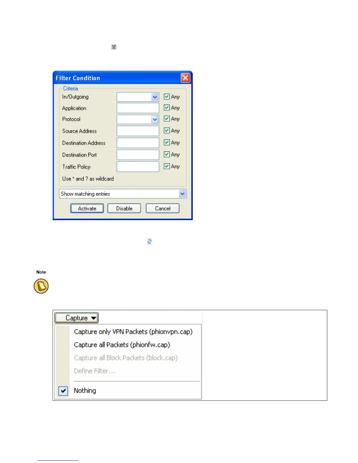 Activate to activate the filter settings. Click Disable to deactivate the filter settings.
