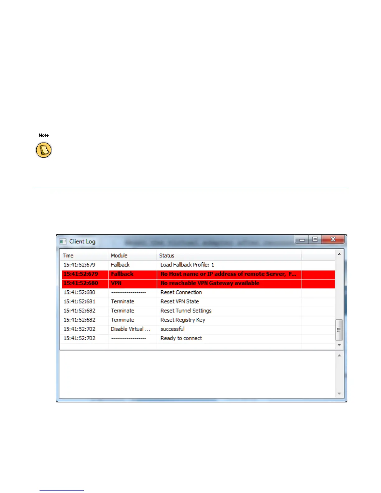 The log information screen displays information collected from the initiation of a connection attempt