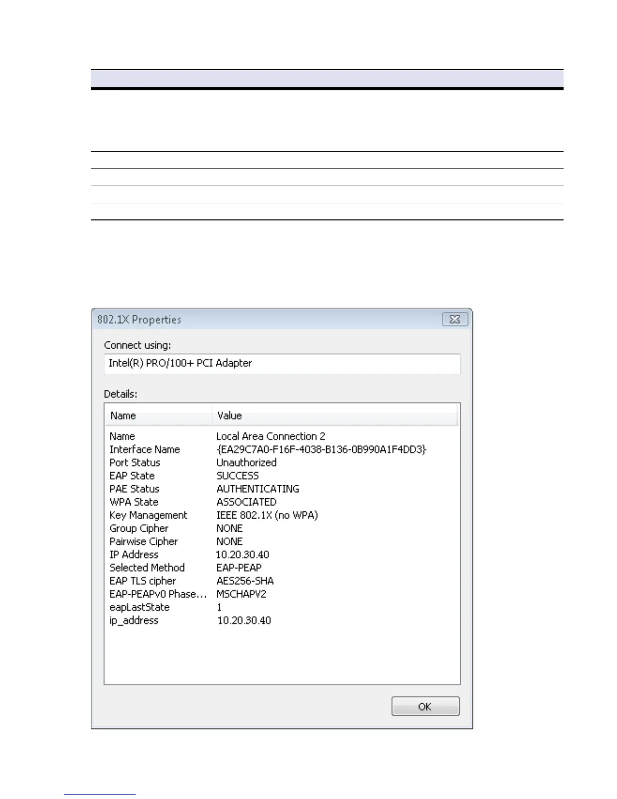 For more detailed information about a network interface, double-click it to open the 802.1X Properties