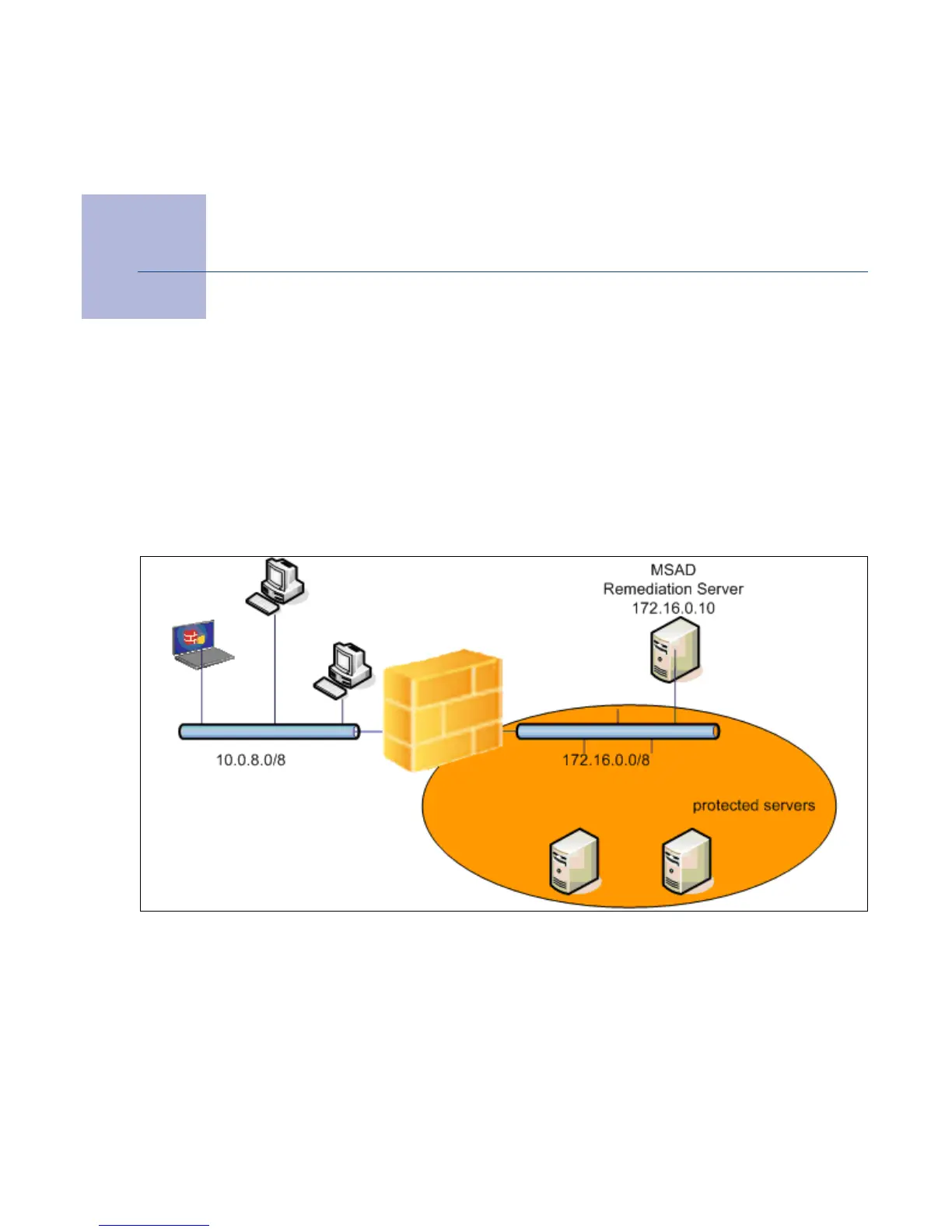 The client LAN has the IP-range 10.0.8.0/24, the protected servers are located in the network