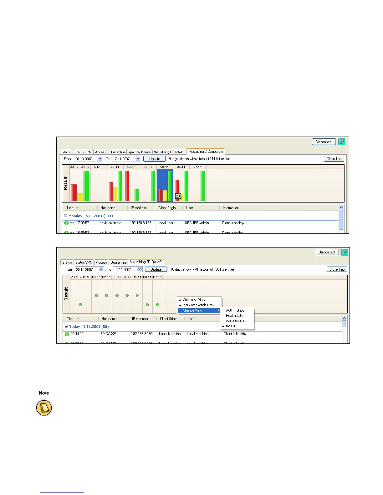 This entry visualizes the health state of the selected client. The graphical status at the top