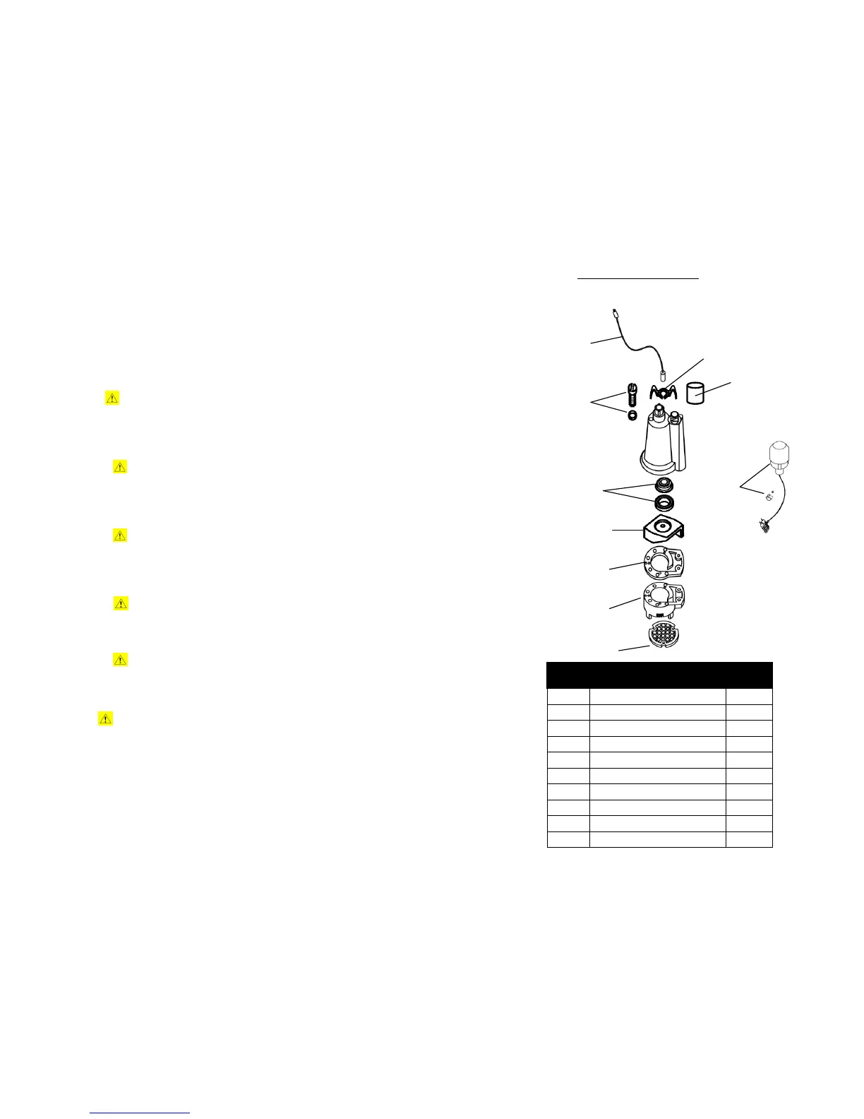 RISK OF ELECTRICAL SHOCK. This pump is supplied with a grounding conductor and