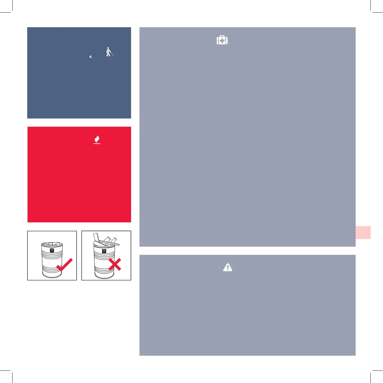 AVISO! Não use desnaturante, gasolina ou outros líquidos inamáveis para acender ou reacender!